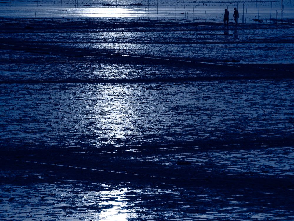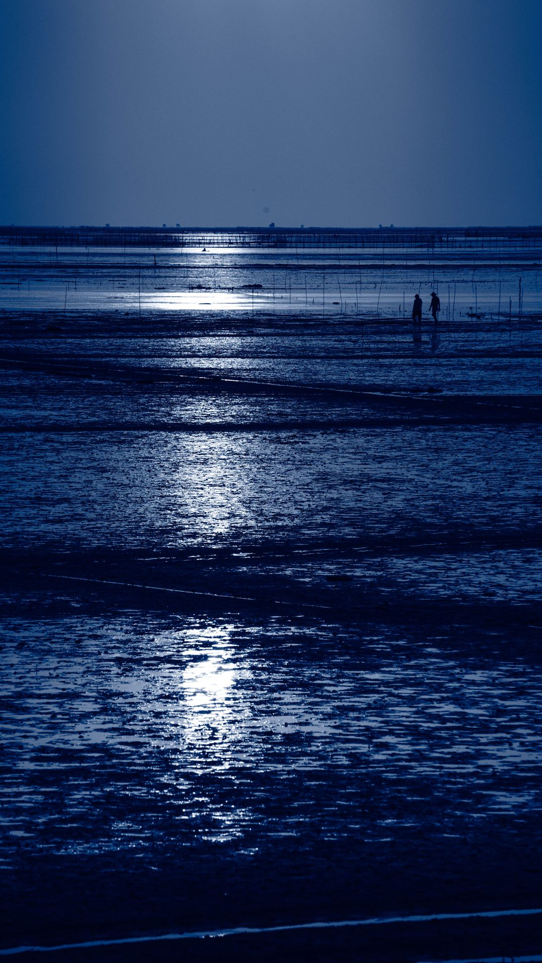 Two strolling visitors wandered along the shore, keeping a deliberate distance from the moonlight—brilliant as a spotlight on a stage. Like the black and white keys of a piano, they never met, yet their silent dance held an ineffable poetry.