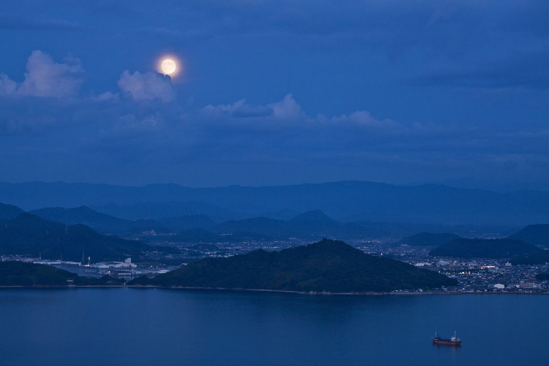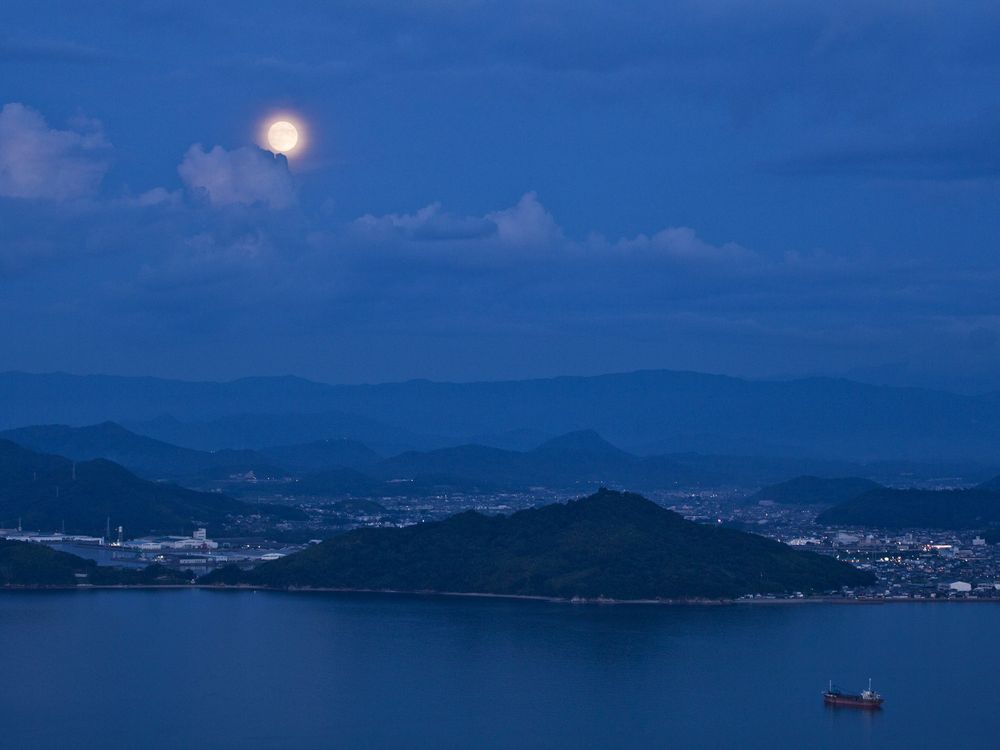 The moon rising over the Seto Inland Sea