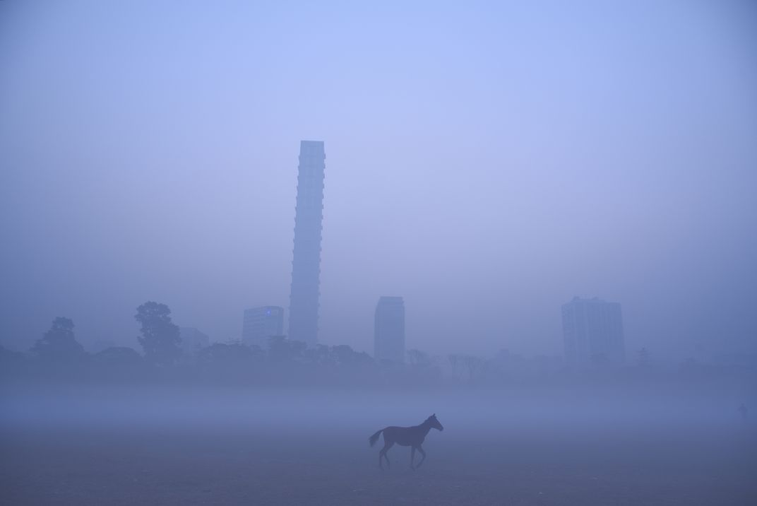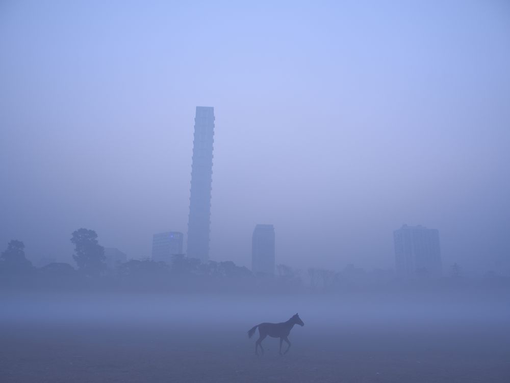 A cold morning in Kolkata. No inhabitants are present for the morning walk or a game of cricket. Only mist all around and a pony is running in the frame to make the city as surreal as ever.