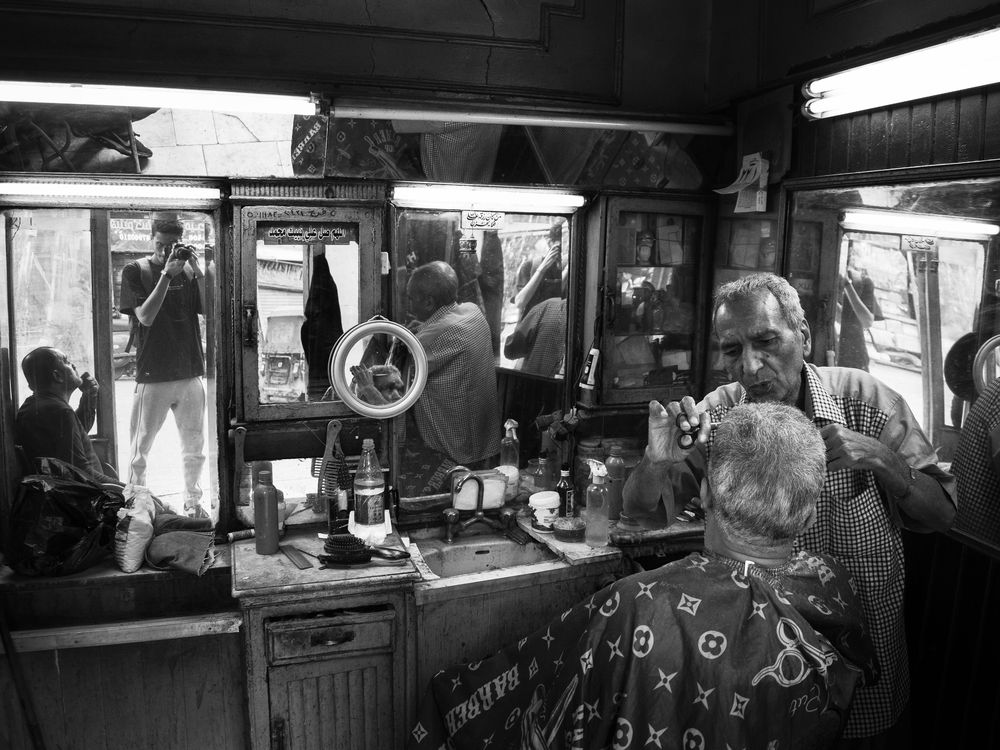 Inside a timeless barbershop in Cairo’s historic Al-Darb Al-Ahmar, an elderly barber continues his craft with passion and precision. The mirrors reflect decades of stories, memories, and the enduring spirit of traditional Egyptian life.
