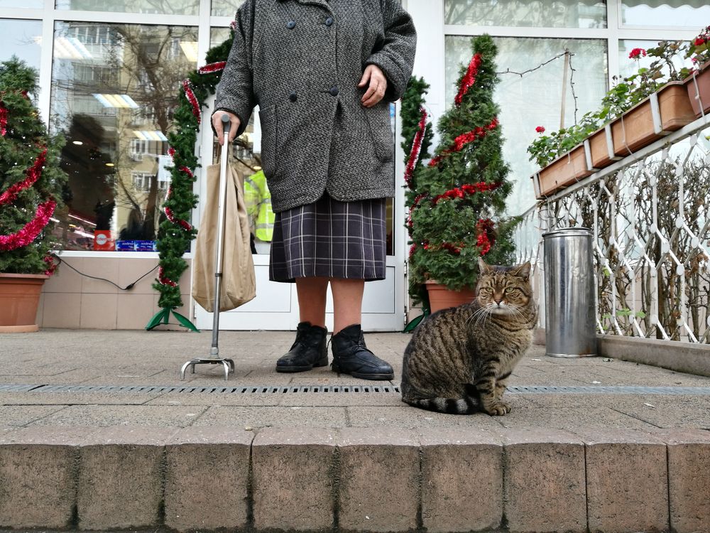 A face of loneliness, old age and beautiful Christmas atmosphere, somewhere in Bucharest, last winter.