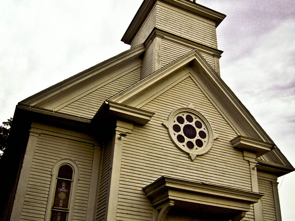 The old St. Thomas Catholic Church at sunrise built in 1870 Jessenland, Minnesota