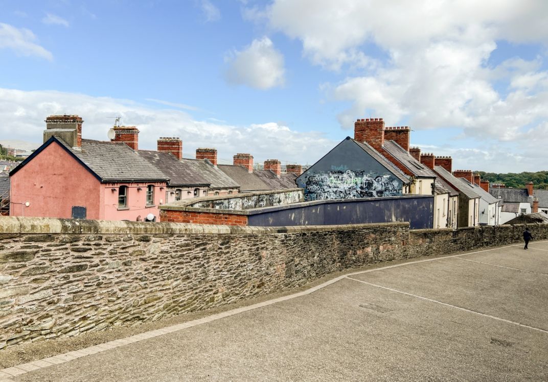 A man walks in the distance along the Peace Wall in Belfast, Ireland. Several walls were built to separate the Protestants from the Catholics following the Troubles conflict.