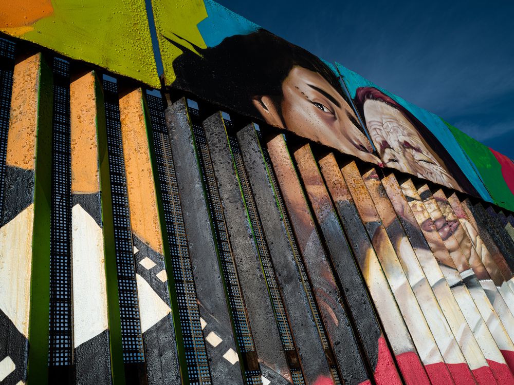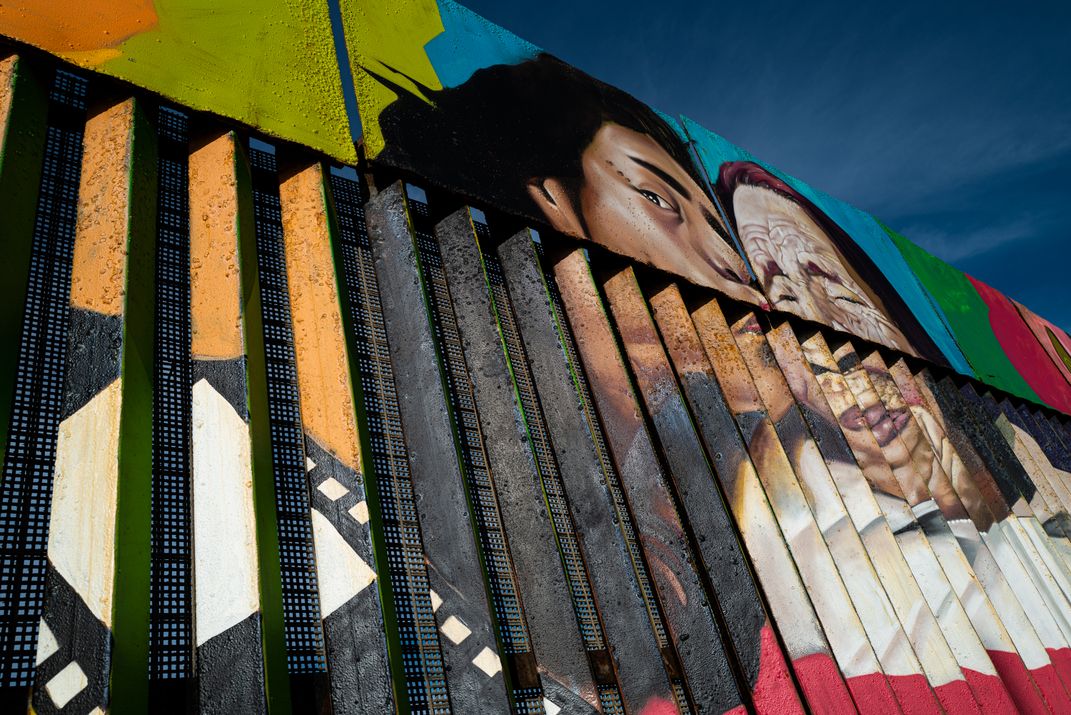 One of the profoundly moving public murals painted on the Mexican side of the Wall, the Muro, communicating the pain and suffering of the separation the wall causes. This is public art at its very best.