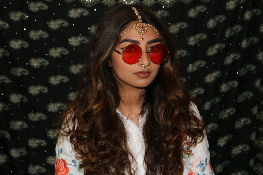 This photo attempts to incorporate the South Asian Culture mixed with American Culture. The jewelry is very Pakistani yet the attire and sunglasses would be seen as American and maybe even something "trendy". Immigrants go through so many struggles and one includes fitting in regardless of their cultural norms at home which most likely are different. This picture shows the dual sides of many South Asian girls and just a small bit of many struggles they have to fit into the American society.