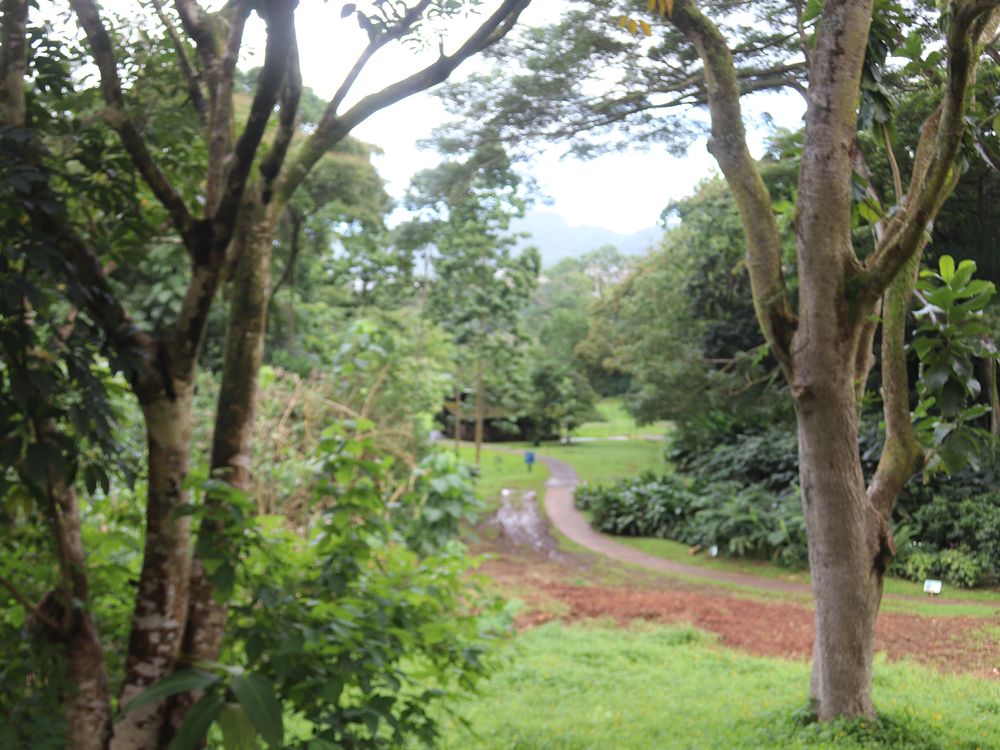 A little used road on Oahu in Hawaii.I walked a bit to get the road between some of the trees