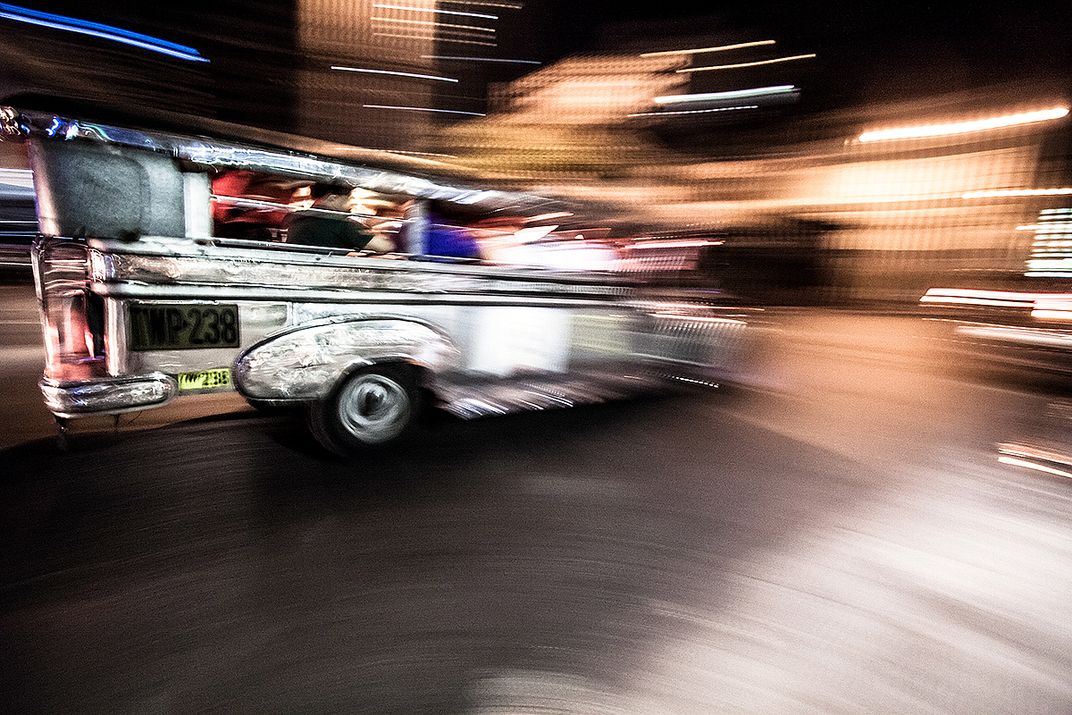 The Philippine Jeepney speeding through the streets of makati City ,philippines