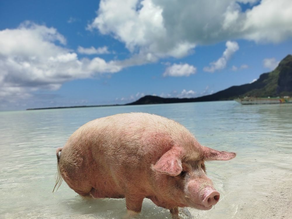 It's been three years that I live in Tahiti, french Polynesia. I wen't twice to a small and very quiet island called Maupiti, close to Bora-Bora. There's a traditionnal meal every week on the motu (small island) and a very big pig is living there and sharing time with people. I think it was first supposed to be cooked but than it became a companion.