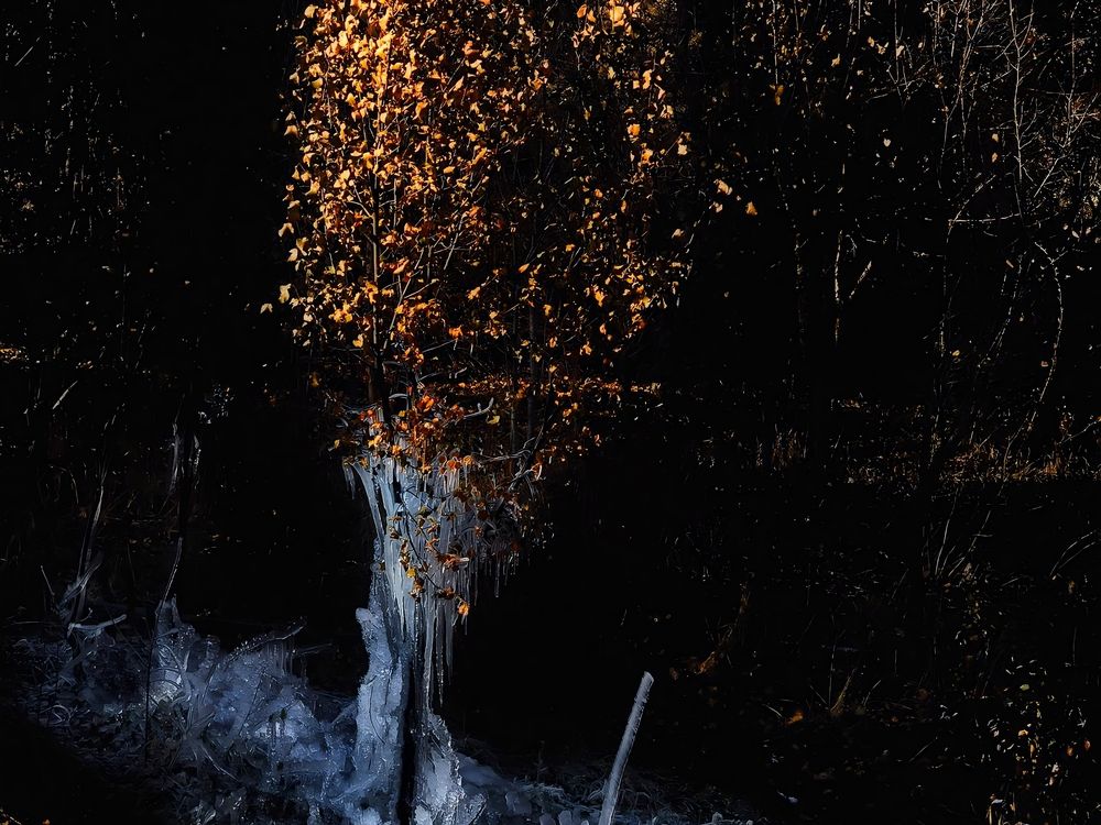 A half frozen tree، a winter battle for life، and nature watching in silence.