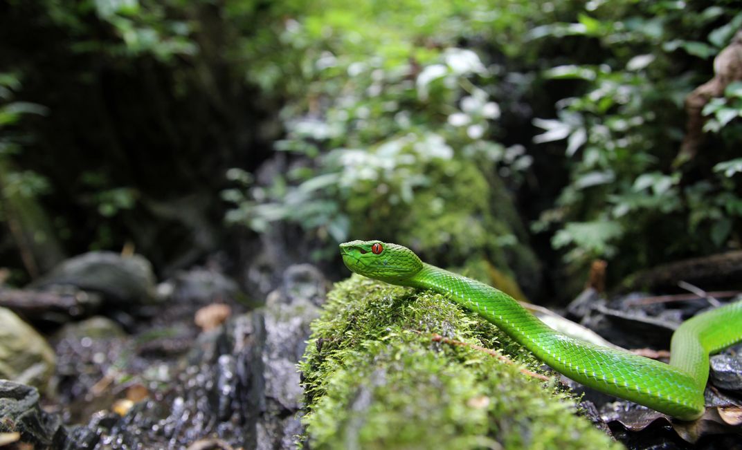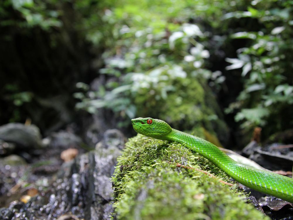 The Pope's Pit Viper ( Trimeresurus popeiorum popeiorum), Venomous snake of India, Photographed at Buxa Tiger Reserve , West Bengal, India.This is a nocturnal species. Usually seen on low bushes shrubs. Feeds on small mammals,small birds,lizard etc.