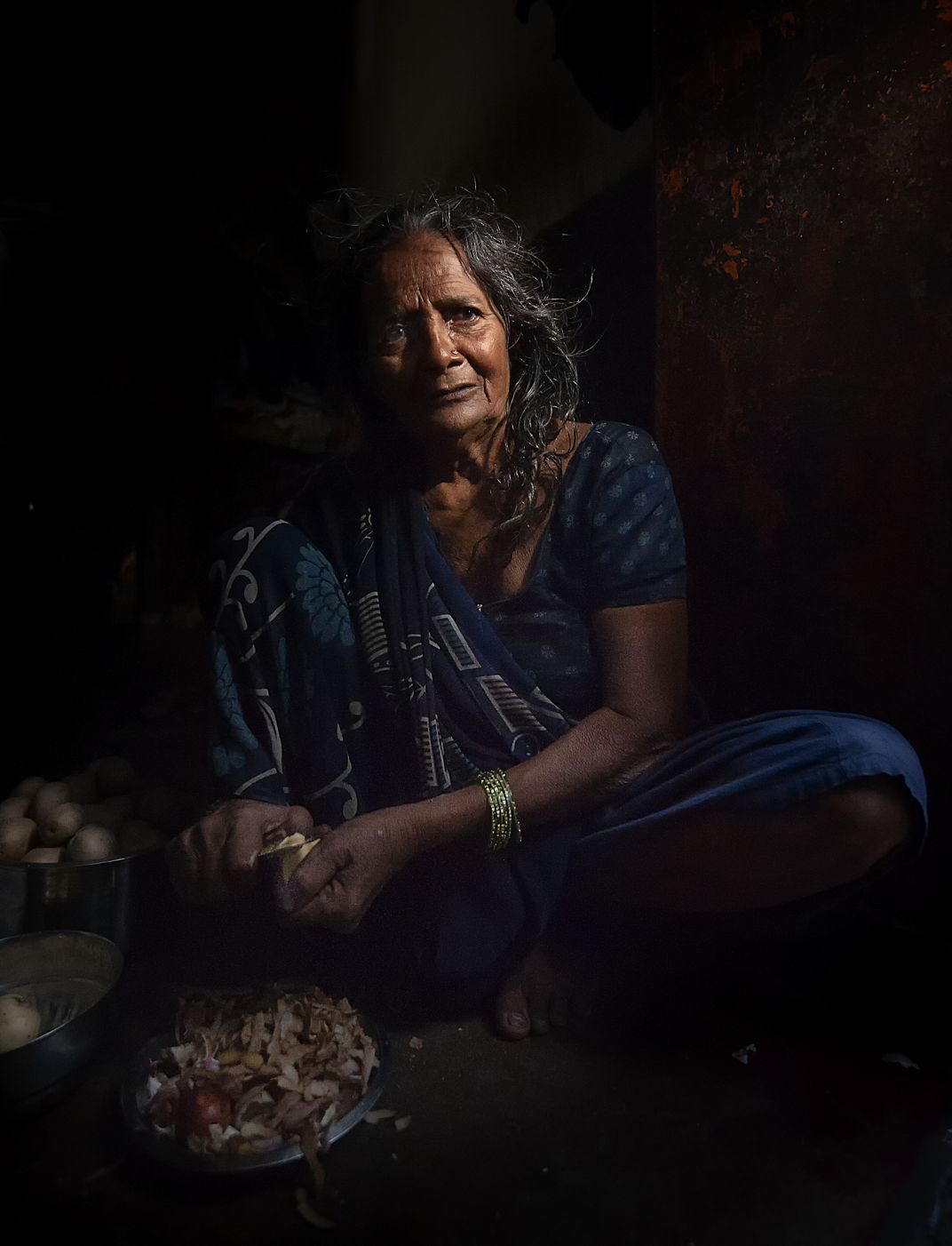 This was a portrait of a woman who was preparing a breakfast and she was peeling potatoes at that moment when I captured her.