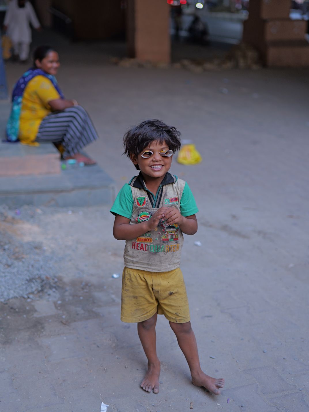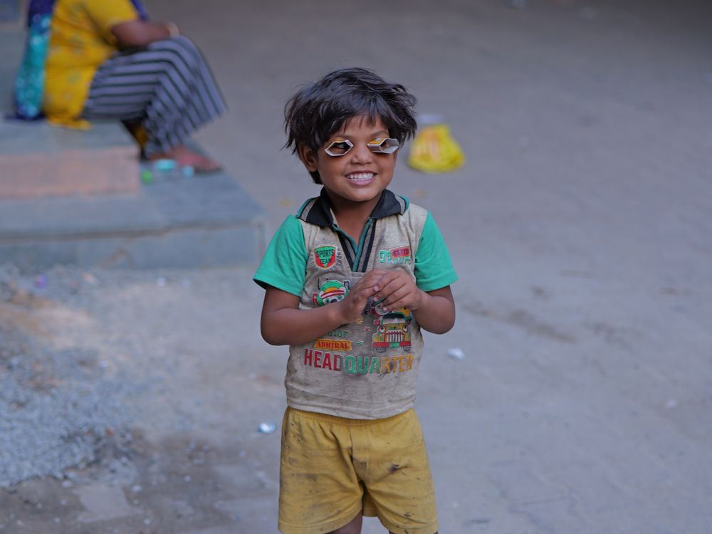 A small youngster in a poor slum finds joy in his vivid imagination, using a sharpener's paper cover as makeshift goggles to escape to a realm of opulence. His dazzling smile expresses persistent joy despite his gloomy circumstances and filthy, torn clothing. The photographer captures a moving reminder of joy in the face of hardship.