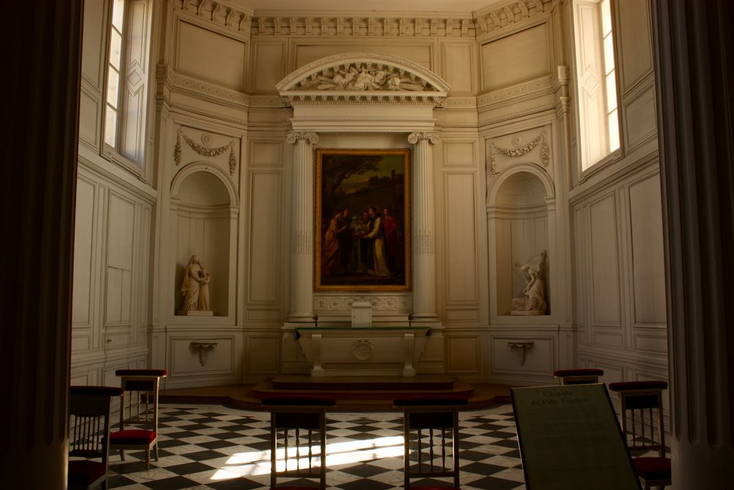 The Petit Trianon chapel. One of the many points of interest when visiting Versailles. Ever since it was opened to the public, it is visited by many tourists who consume it as another commodity. Who doesn't love to walk the steps of the powerful kings and queens? The domination of one human by another must fester in our romantic imagination.