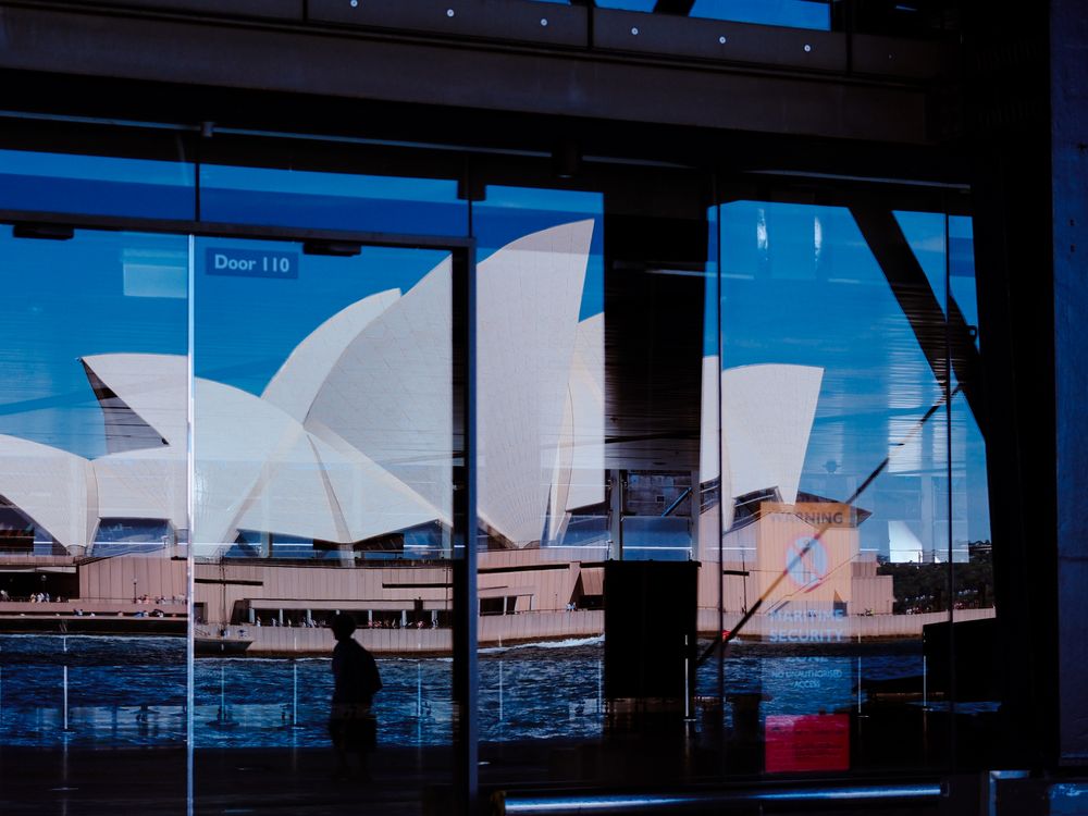 The Sydney Opera House was reflected on the glass window. Although it wasn’t far from where I was standing, the contrast in the number of people was striking. The same place carried a completely different atmosphere. At that moment, a passing silhouette appeared in the reflection, adding a sense of how people can be surrounded by a lively world yet still feel a quiet loneliness within.
