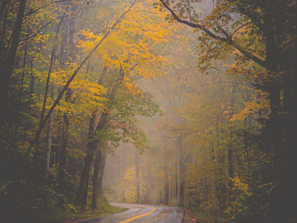 Foggy autumn morning in the Great Smoky Mountains.