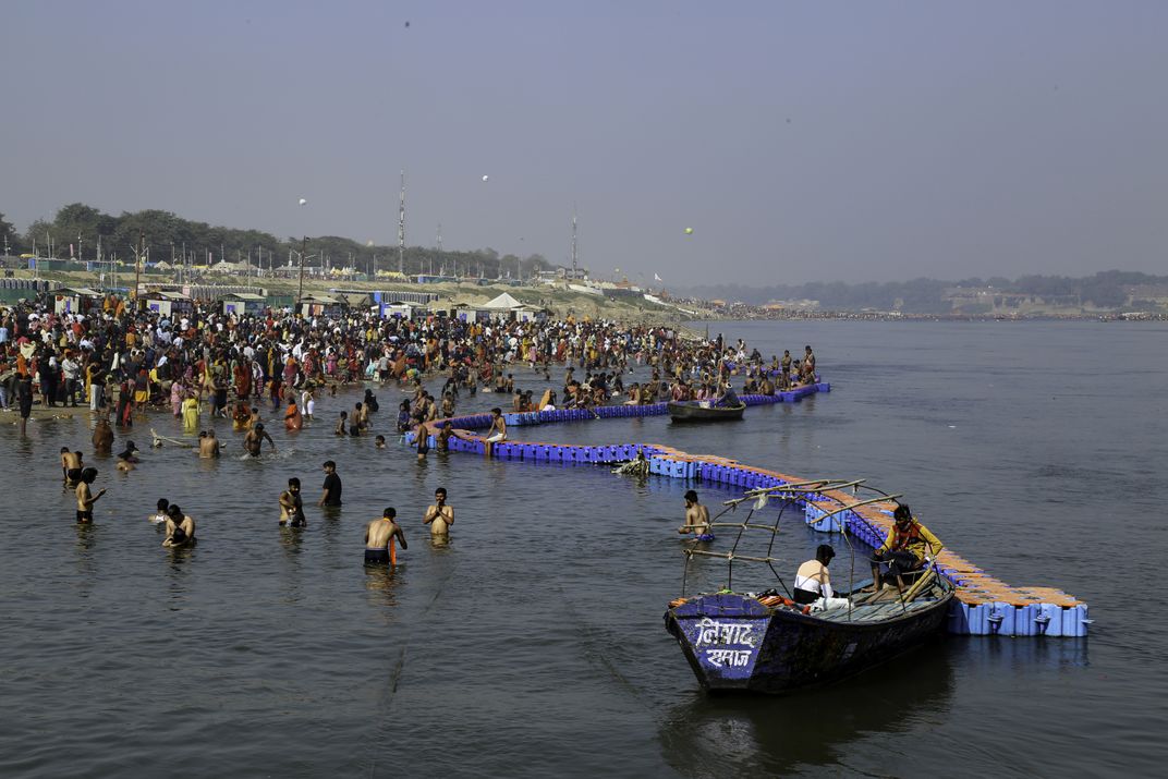 Pilgrims gather where rivers meet — chanting, bathing, and offering flowers. The holy waters shimmer with faith, turning the river into a living ocean of devotion.