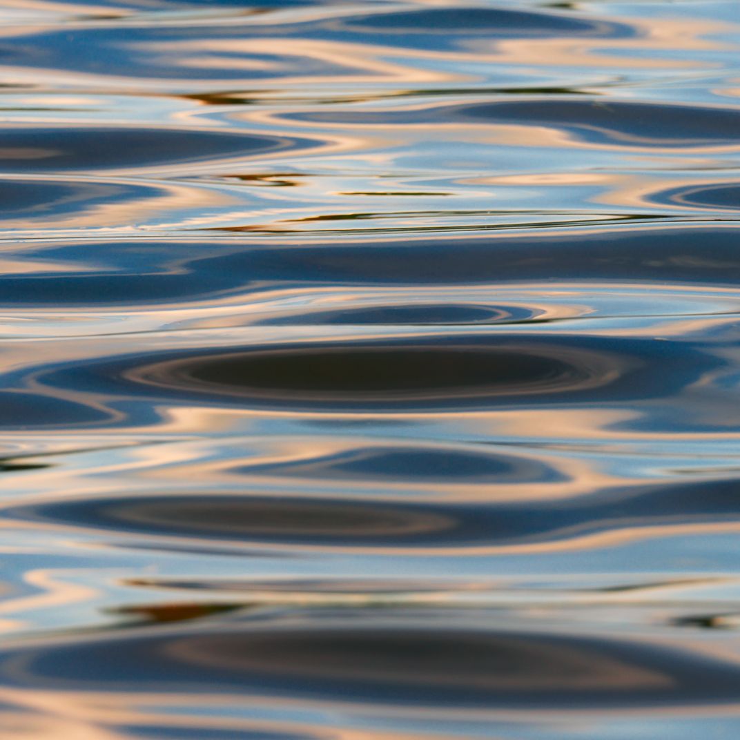 This abstract work captures the way light and water interact with each other. The image is made of the various ebbs and flows of the Potomac River and blends the cool, blue of the water with the warm, golden hues of light reflecting off it. The repeating patterns of color, light, and the waves create a hypnotic, dreamy scene.