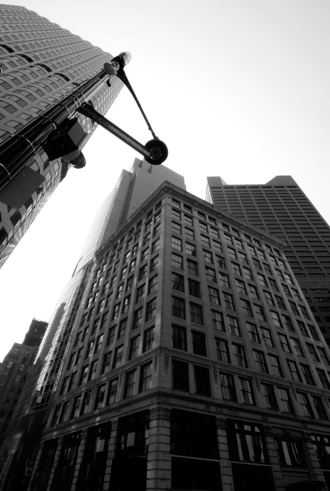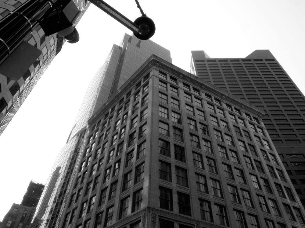 This photo is showing what you can see if you look up while you are walking through the streets of Boston.