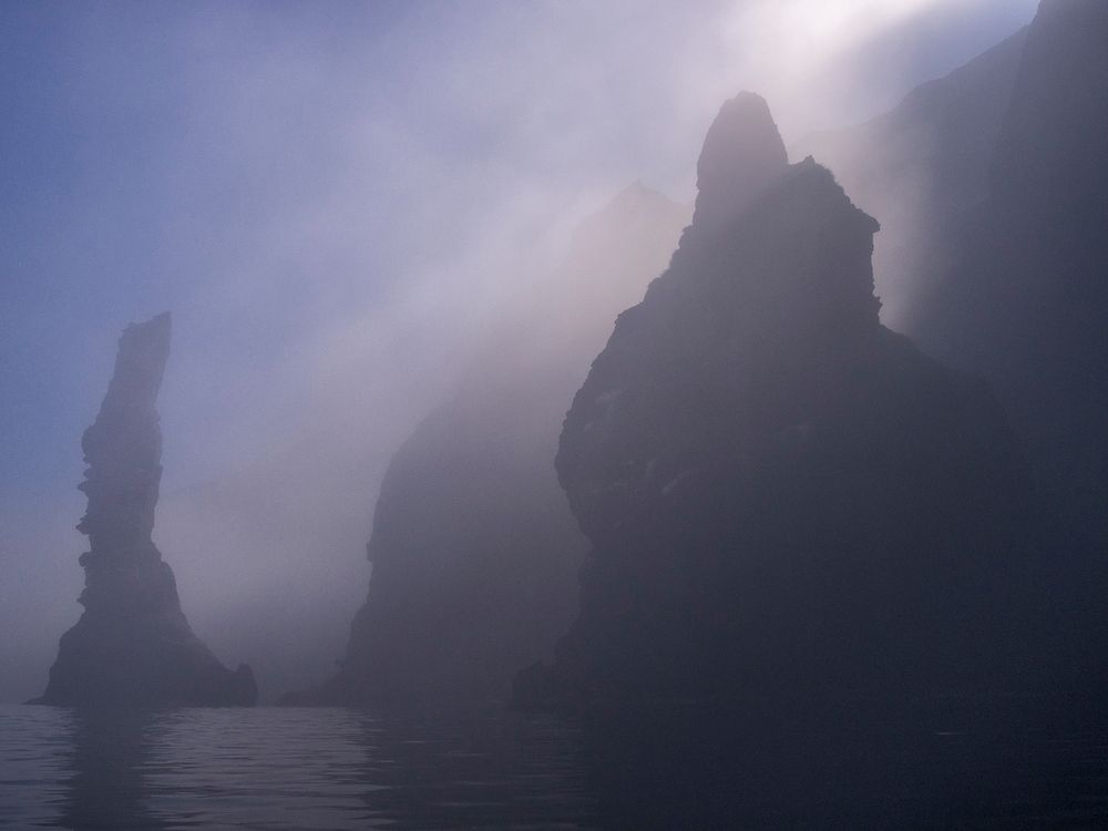 This rock, called Spire, rises near the cost of Chirip peninsula of Iturup island and may be reached only by sea