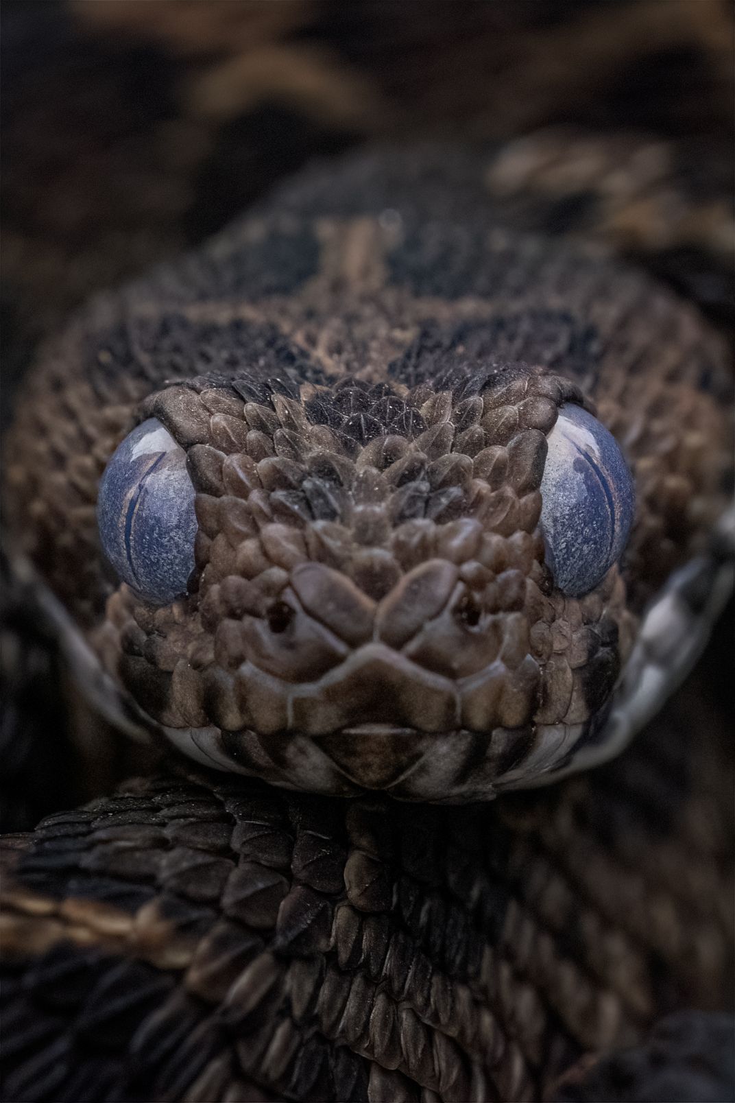 The lethal stare of a Saw Scaled Viper! Very interesting to see the moult on its both eyes, yet to shed. This photo was shot in the lateritic plateau of the Western Ghats of Goa, India.