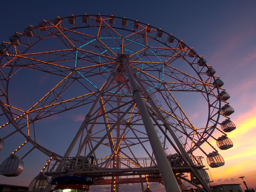 The sun was setting in Manila Bay when I saw this Ferris wheel lighted against the sky.
