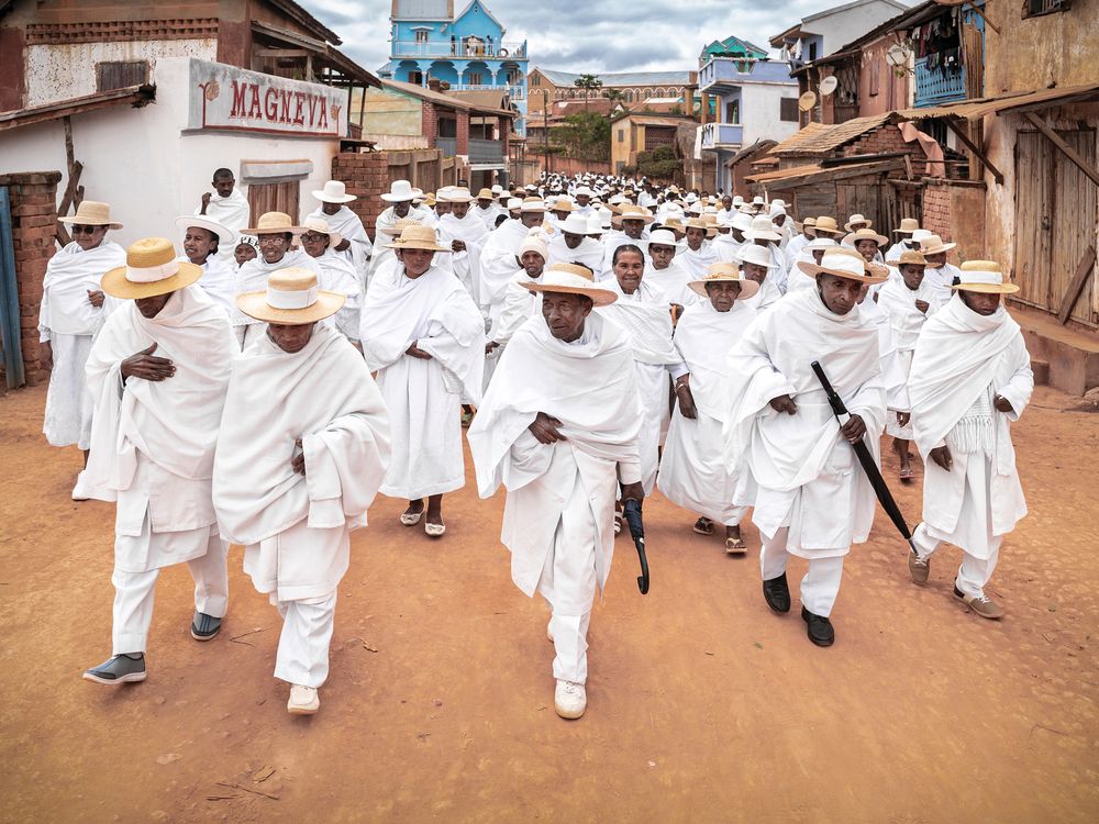Congregants of the Fifohazana Malagasy movement during the traditional Sunday procession (Madagascar). The congregation of the Fifohazana (awakening) movement in Madagascar is part of an indigenous Christian revival that began in the late nineteenth century with Rainisoalambo. It is integrated within the Malagasy Lutheran Church, which has more than five million members and thousands of congregations. This movement emphasizes spiritual healing, exorcism, service to the poor and sick, cleanliness, daily communal prayer and Bible study. The community also contributes to social development through cooperatives, literacy programs, schools and health services. Believers, known as mpiandry or shepherds, are consecrated laypersons trained at revival centers called toby. Regional differences exist, for example some centers assign exorcism to a single shepherd while others involve all who are present. The movement remains one of the most significant examples of Christianity adapted to Malagasy culture and identity.