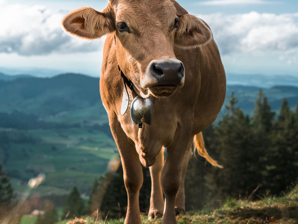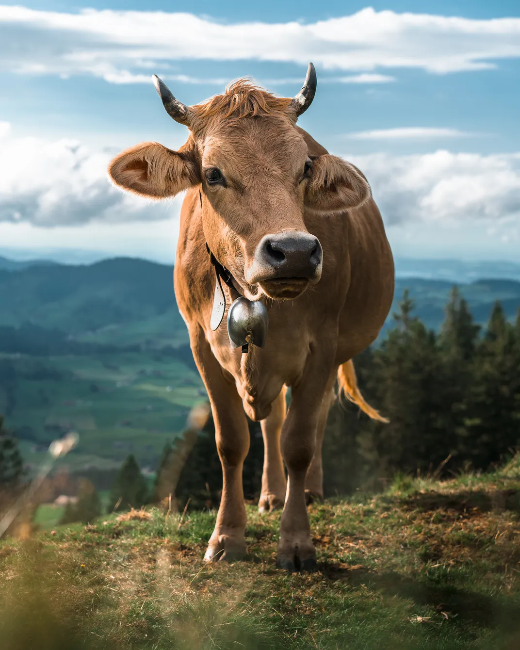 If you ever went hiking in the Swiss Alps, chances are high that you have met a Swiss cow along your trail. This beautiful cow was very patient with me trying to take a picture of her, including the beautiful, surrounding landscapes.