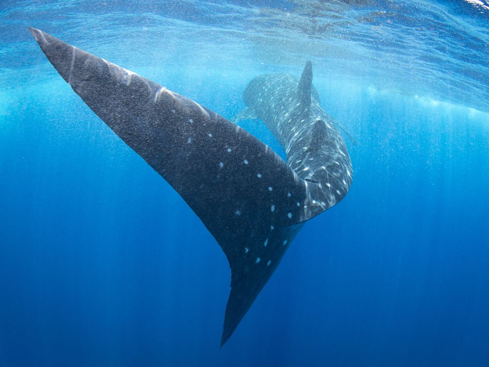 While snorkeling off Isla Mujeres we saw numerous massive whale sharks as they were feeding on plankton. The giant animals looked like they weren't even moving, but in a second they swam past us, leaving us only to see them swimming away.
