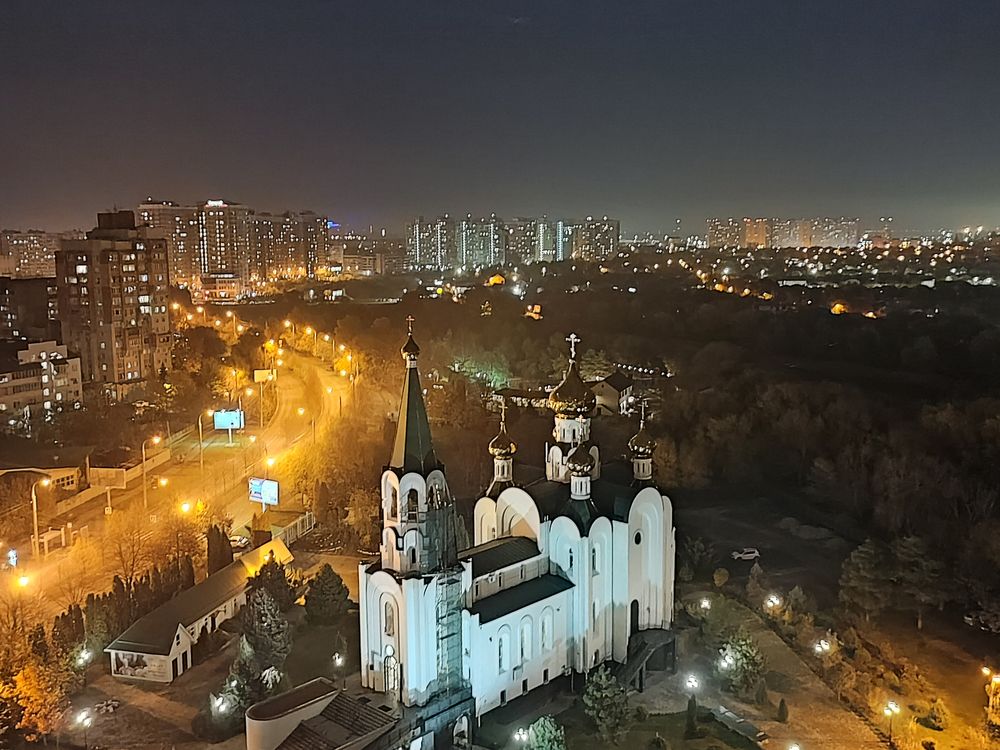 Top view of The Temple of the Holy Spirit in night lighting