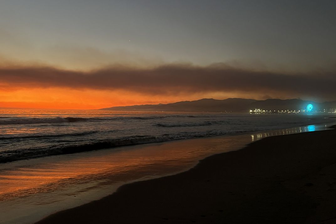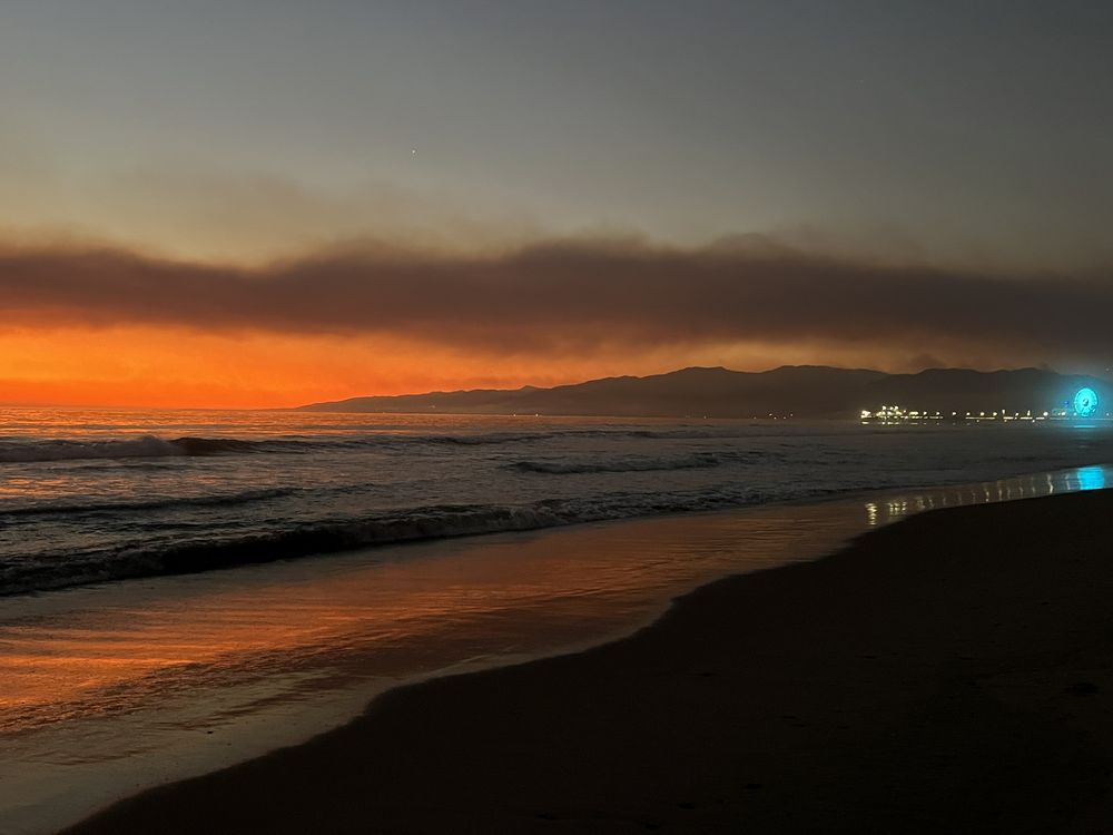 America is a vast land, and each region is prone to its own kind of disasters. In California, earthquakes and fires are our greatest fears. This is Day 4 of the Pacific Palisades Fire as seen from a Santa Monica Beach- Malibu in the distance. The feeling in Los Angeles was surreal. Like the reflected seashore, we could only comprehend the smallest bit of what was happening.