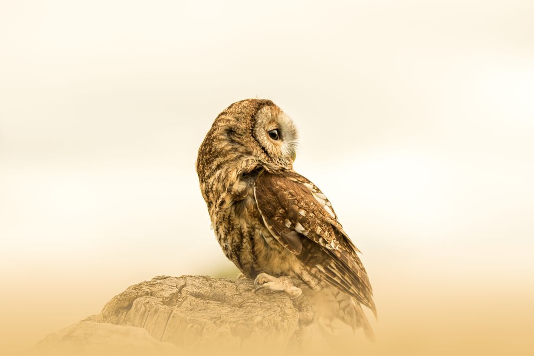 The great vision of the owl looking at new target from behind with amazing theme and and colour synergy