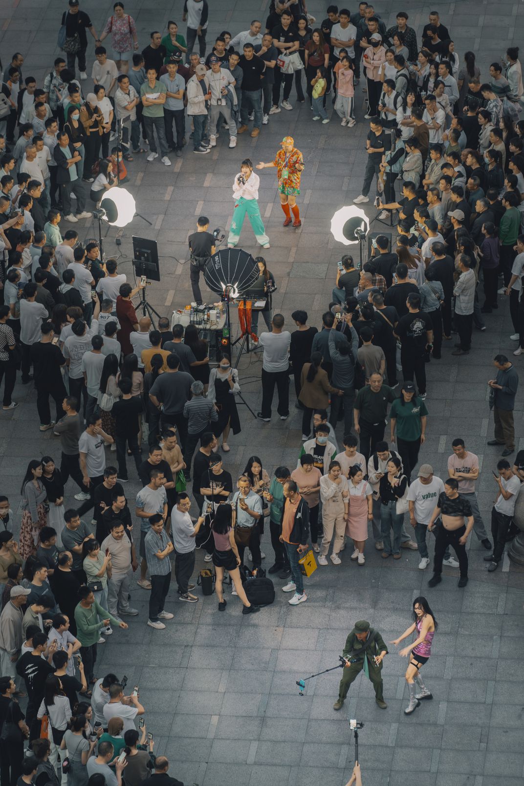 This photo serves as a visual allegory for contemporary digital culture in China. It captures how "traffic" (online attention) manifests as a physical vortex. The live-streamers, at the epicenter, perform vigorously to sustain its gravitational pull, while the surrounding crowd forms dense rings, akin to matter drawn in by an invisible force. Yet, a poignant contrast emerges between this central frenzy and the palpable indifference on the faces of some onlookers. This juxtaposition reveals the exhaustion and transience inherent in the attention economy, metaphorizing the sense of alienation that can persist within a hyper-connected society. The entire scene resembles a microcosm, vividly dramatizing the relentless carnival and struggle for virtual recognition playing out in public space.