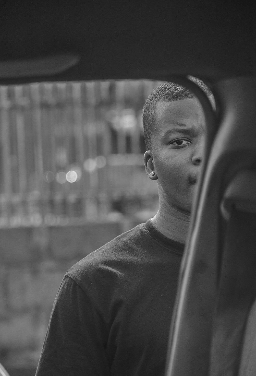 A study in patience. Framed by the door of our disabled vehicle, a traveler looks out, gauging the situation. The partial obscuration of his face represents the uncertainty of the journey—caught between where we started and where we need to go.