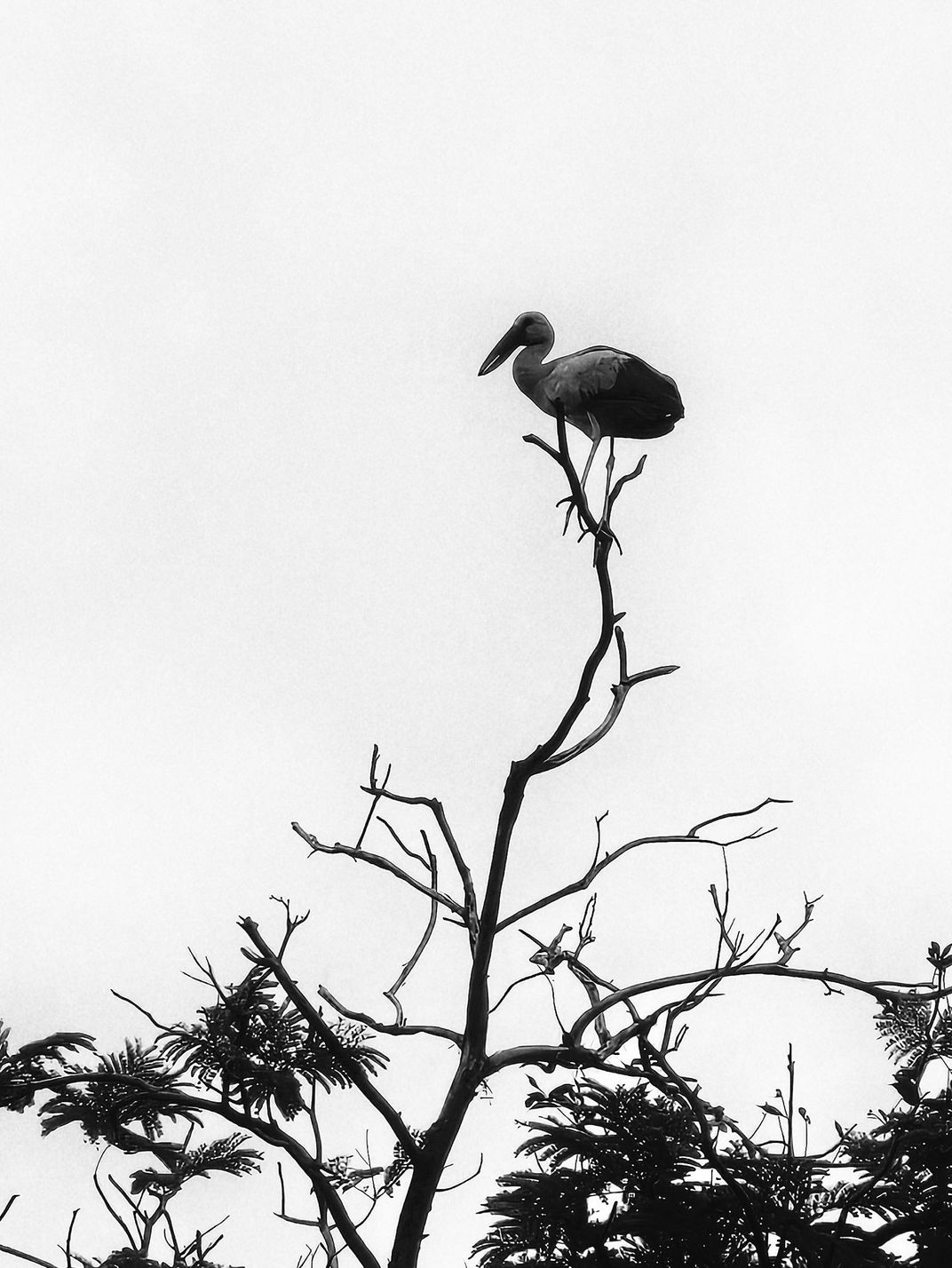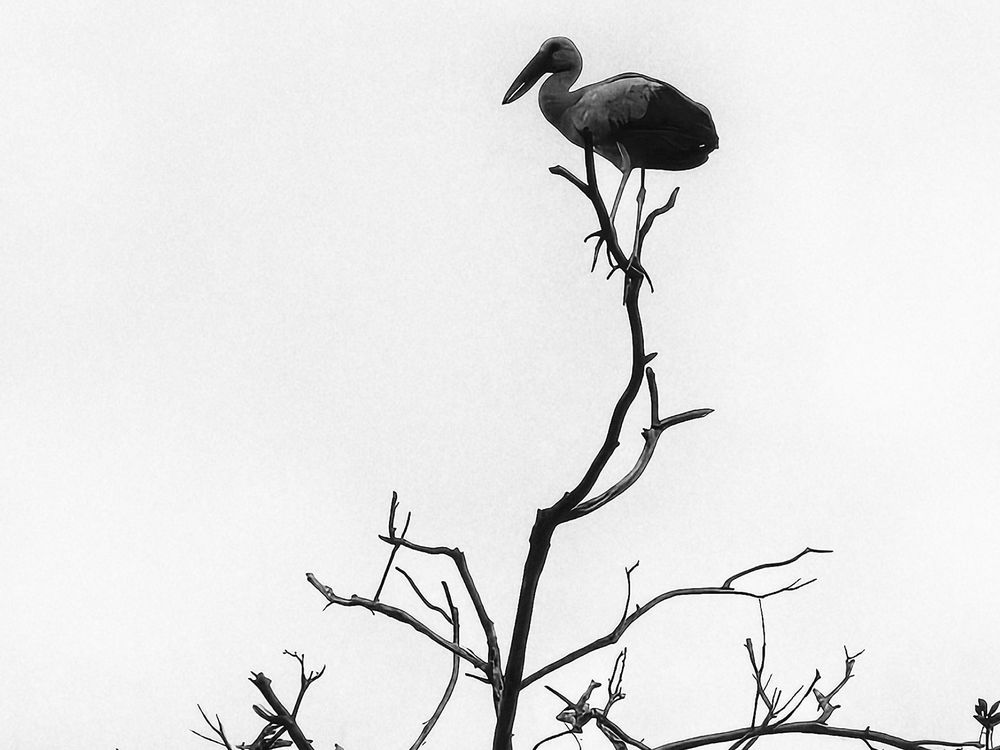 This photo, taken in a park in Bangkok, Thailand, shows a crane perched on a branch, and I sensed its loneliness. What is it watching over from that branch?