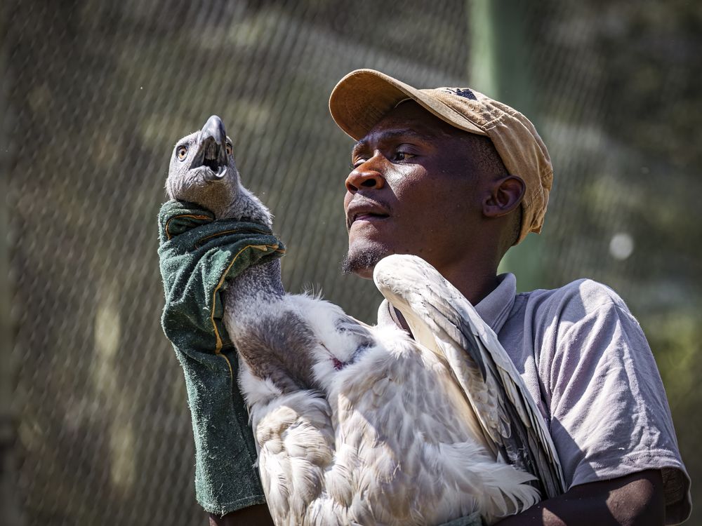The work was intense as teams chased and secured vultures in the heat, capturing 163 birds in 2.5 hours. This moment shows a staff member grasping a vulture while avoiding its sharp beak, a scene that builds anticipation for where the birds are next.