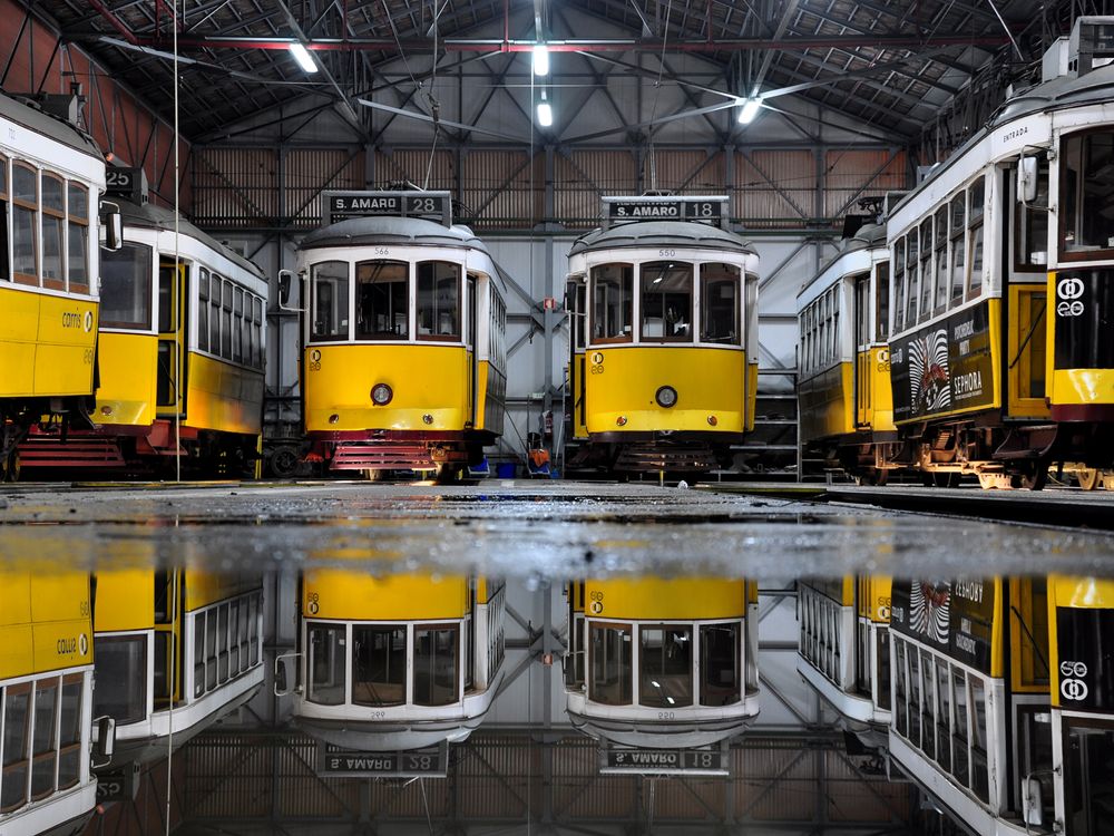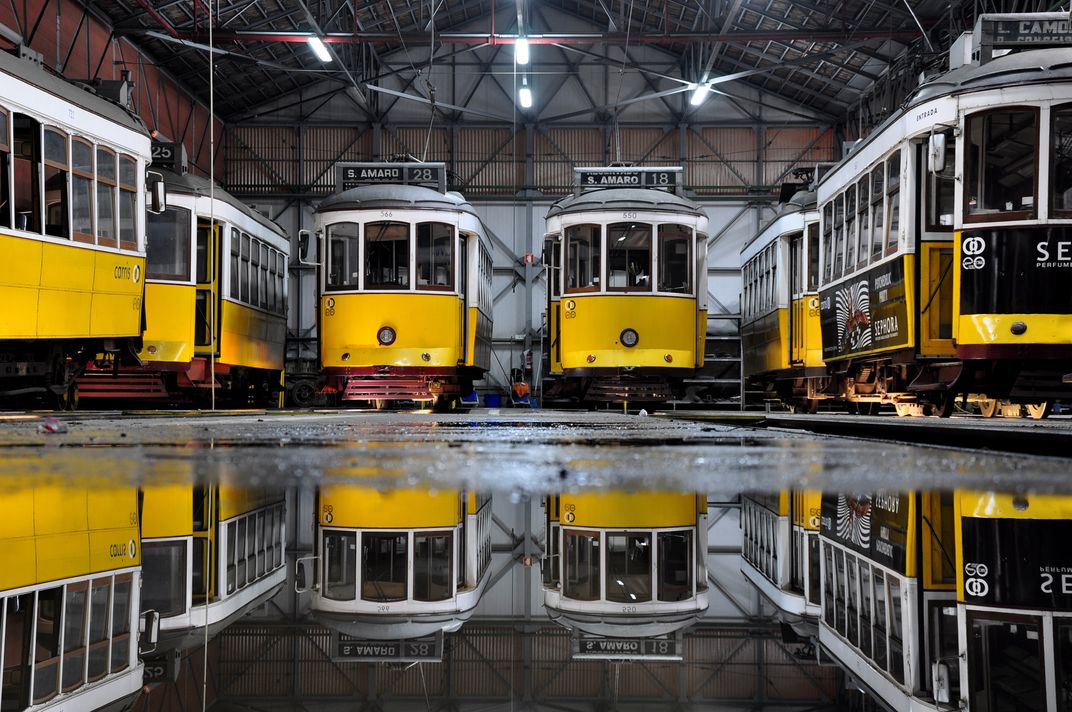 The Yellow Trams are one of the most important symbols of the Lisbon City. Were parked in the station of Santo Amaro, in Lisbon.