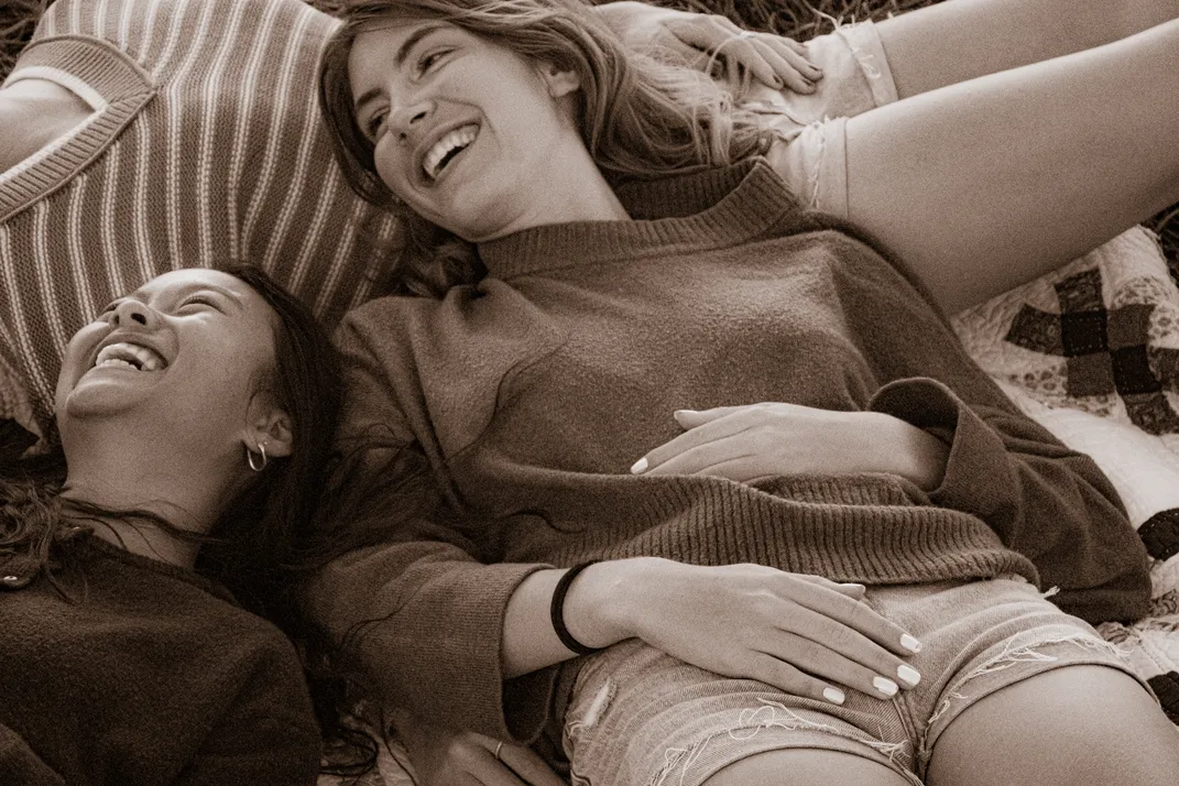 Girls lounge around, enjoying each others company.