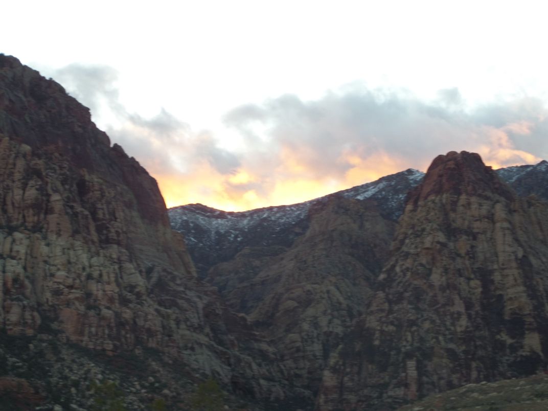 I was hoping to catch an amazing sunset while we were out at Red Rock Canyon, but I originally mistook the sun setting behind these peaks as fire. I thought this was a really cool effect.