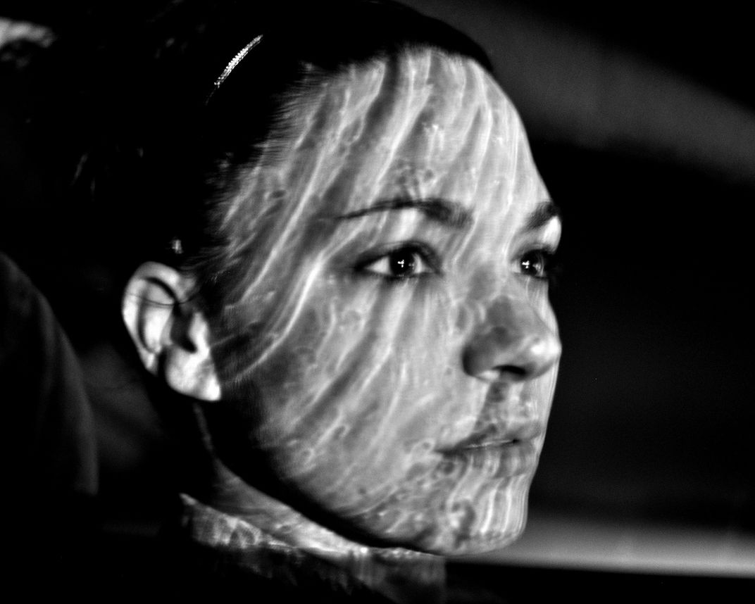This is my girlfriend Estelle. The design on her face was created by a powerful security spotlight on our farm and the rain that was hitting her passenger side window.