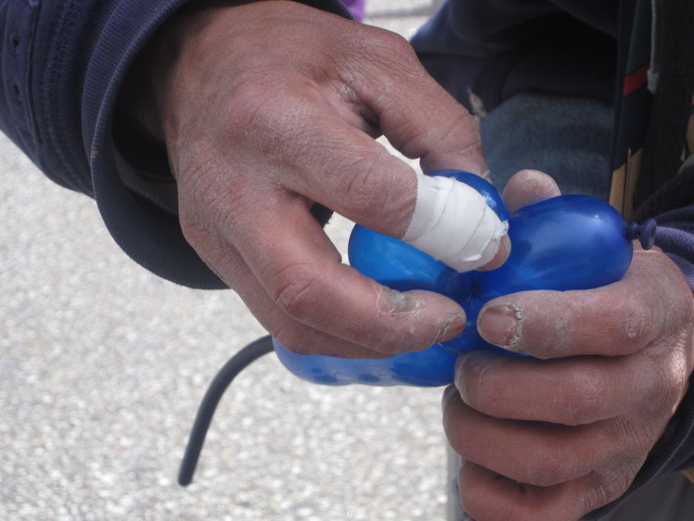 This picture was taken of a balloon artist's hands. as he was making a mouse for my daughter.