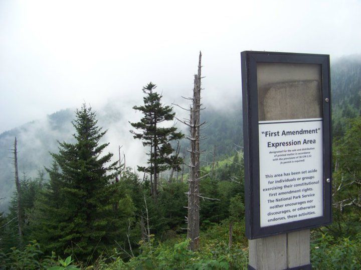 this sign sits in the Clingman's Dome Parking area in the Great Smoky Mountains National Park in NC. This really made our family stop and think about why we love this country