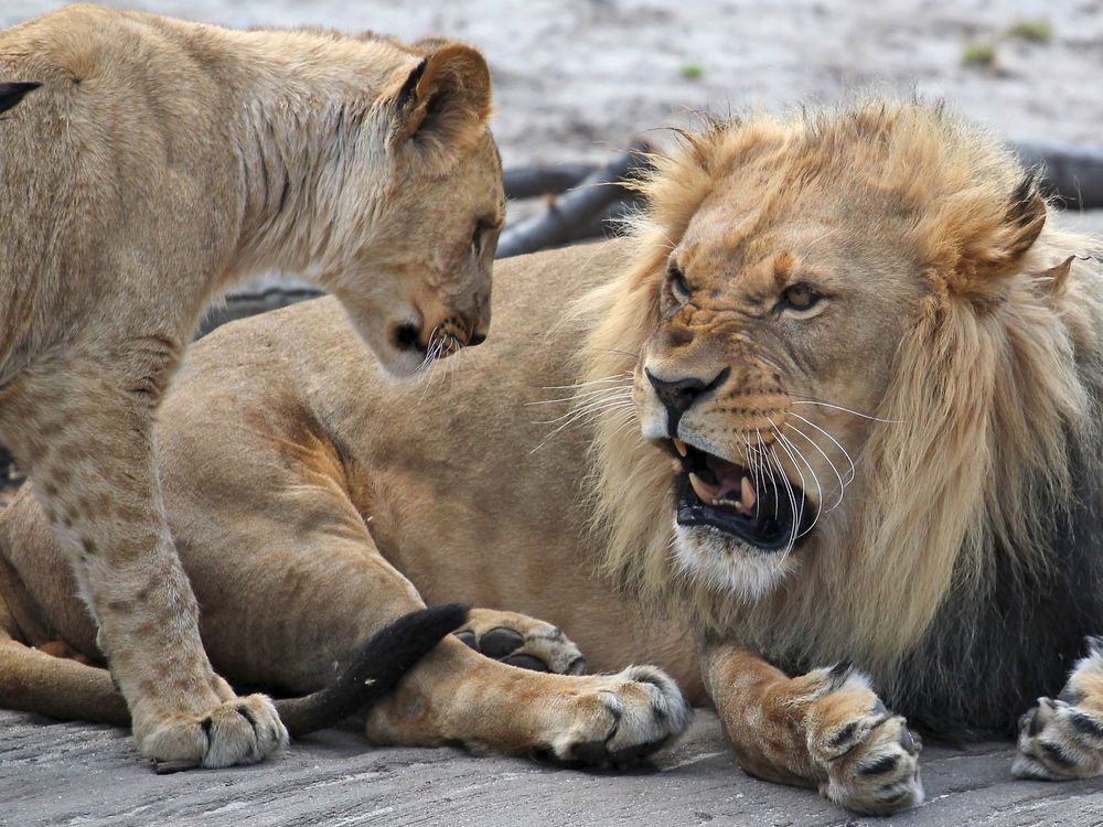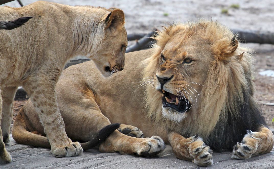 This testy lion is reminding his "teenage" cub that he's still the boss.