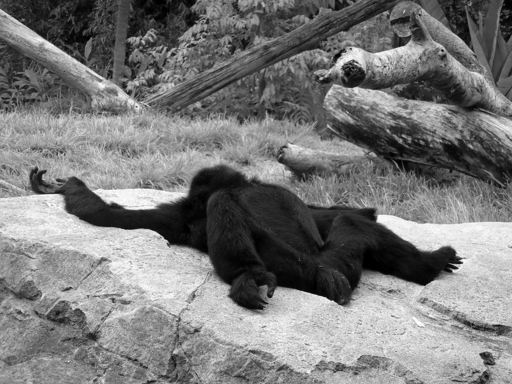 This was a very funny monkey that we saw at the San Diego Zoo. It was early in the morning, so he must of been super tired.