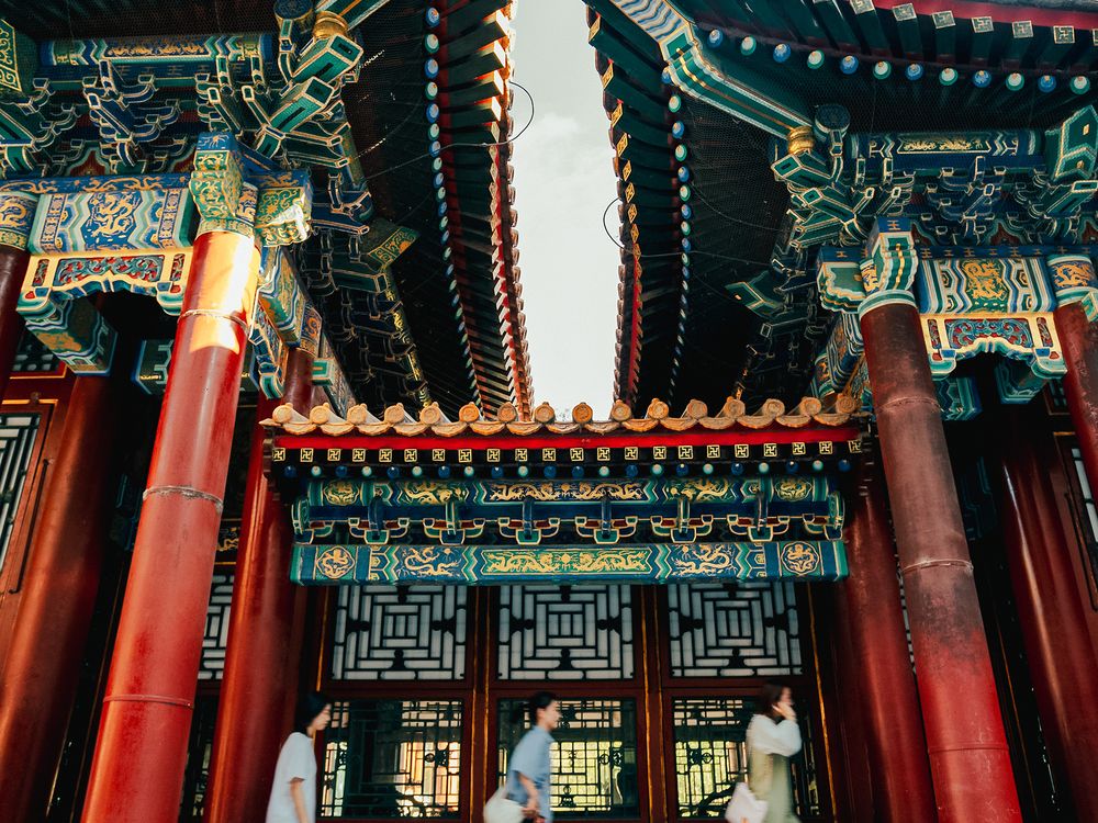 Past and present align. In this vertical frame, the enduring sentinels of the Summer Palace pagodas embrace three contemporary figures in perfect, harmonious balance: a timeless bridge between millennia of heritage and the enduring pride of its people.
