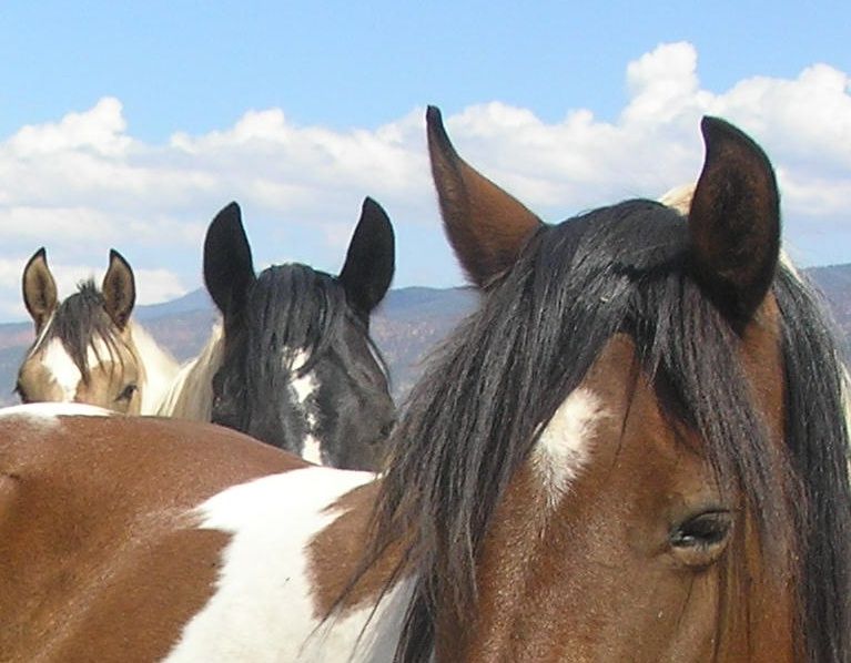 Three horses in a row on a ranch in Utah