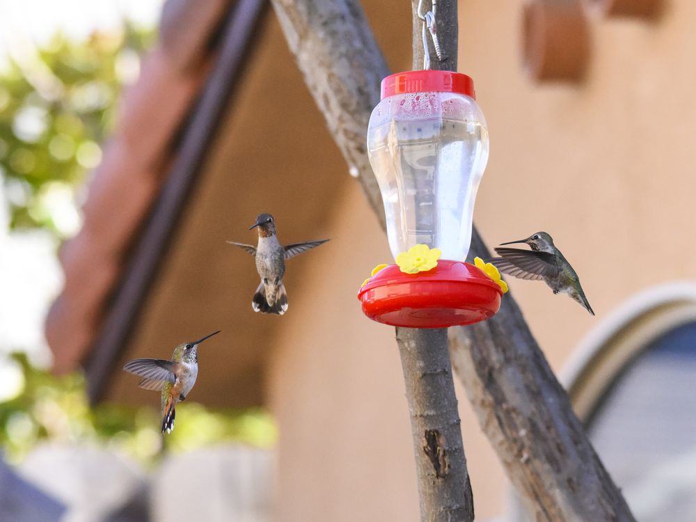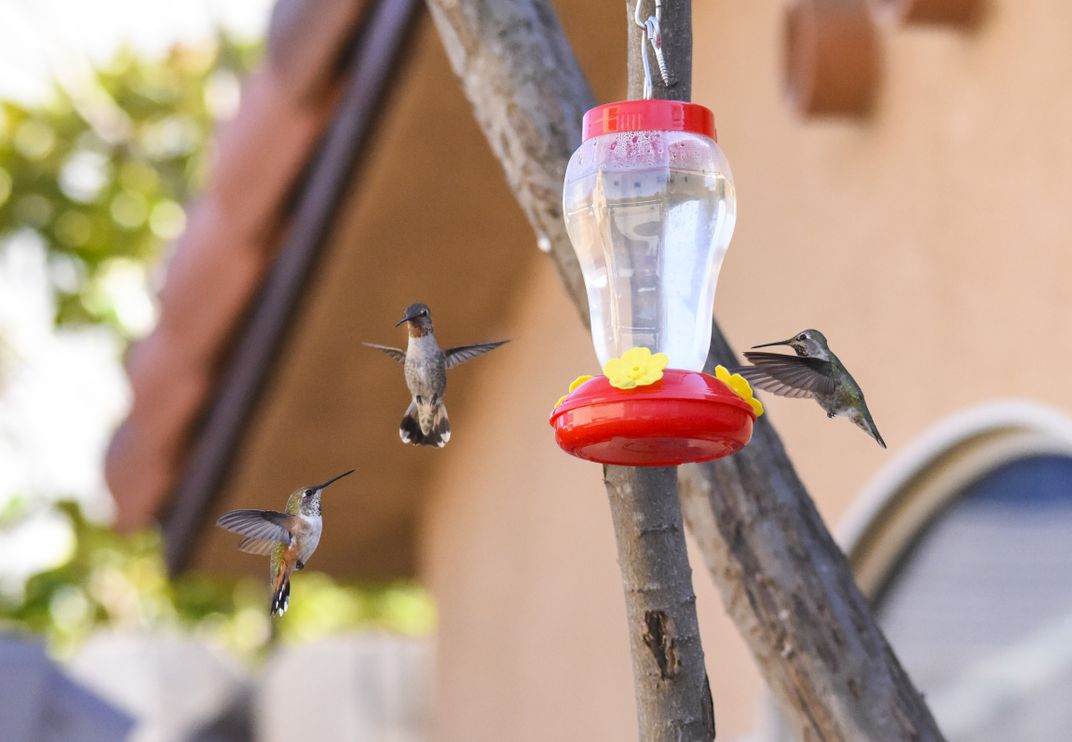 Three Hummingbirds feeding