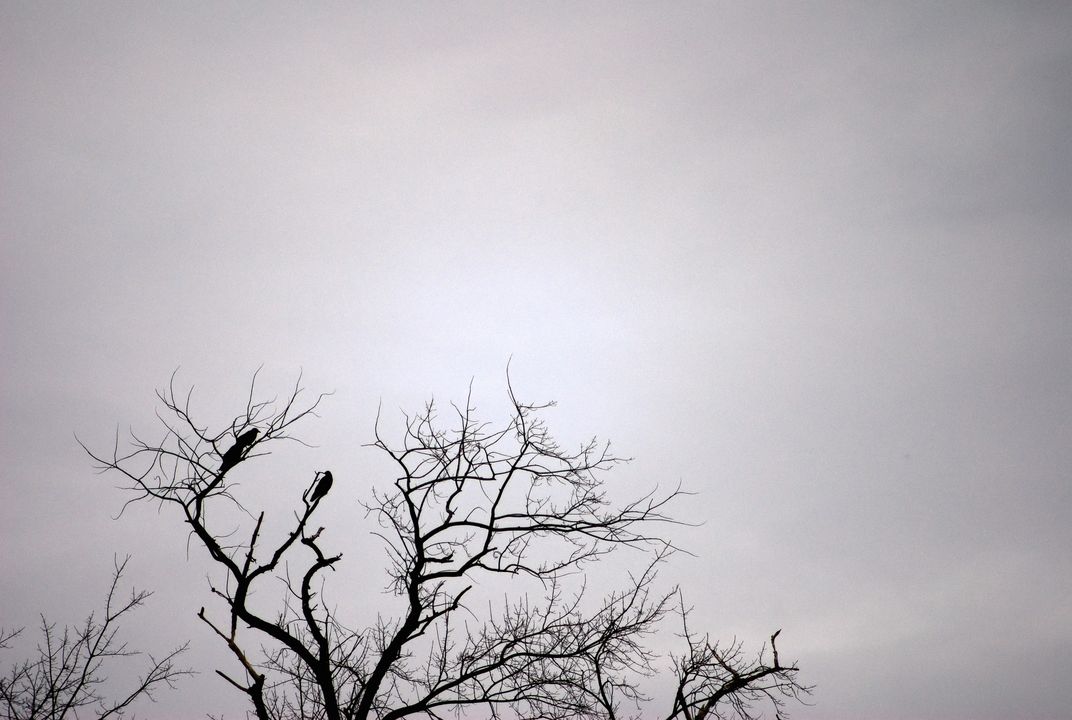 Three Ravens in a dead tree against a cloudy backdrop. Always an eerie scene to me.