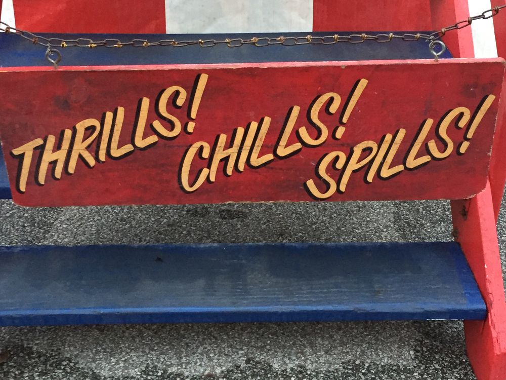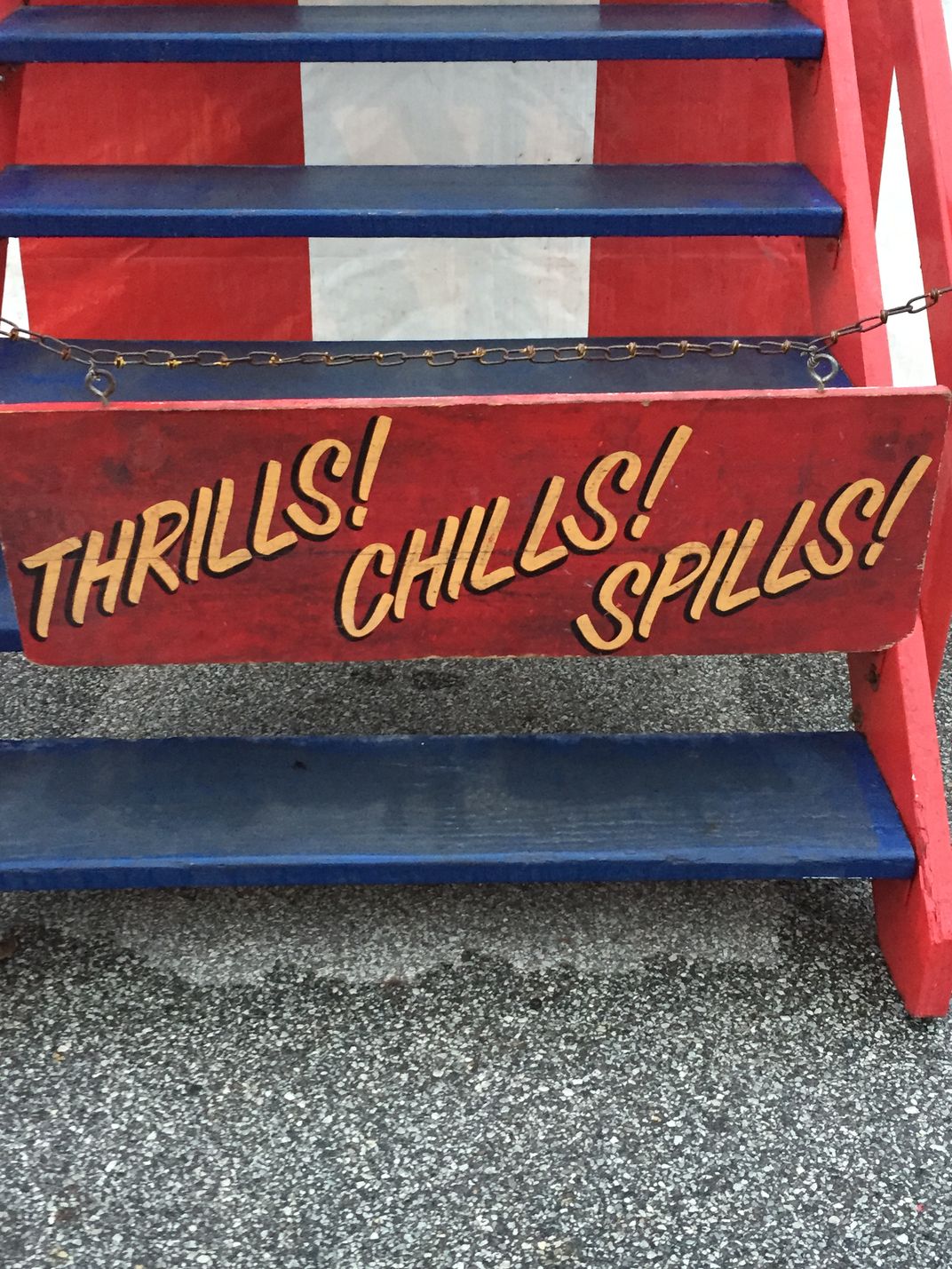 This sign was at the bottom of the stairs going into the American Motordrome Wall of Death