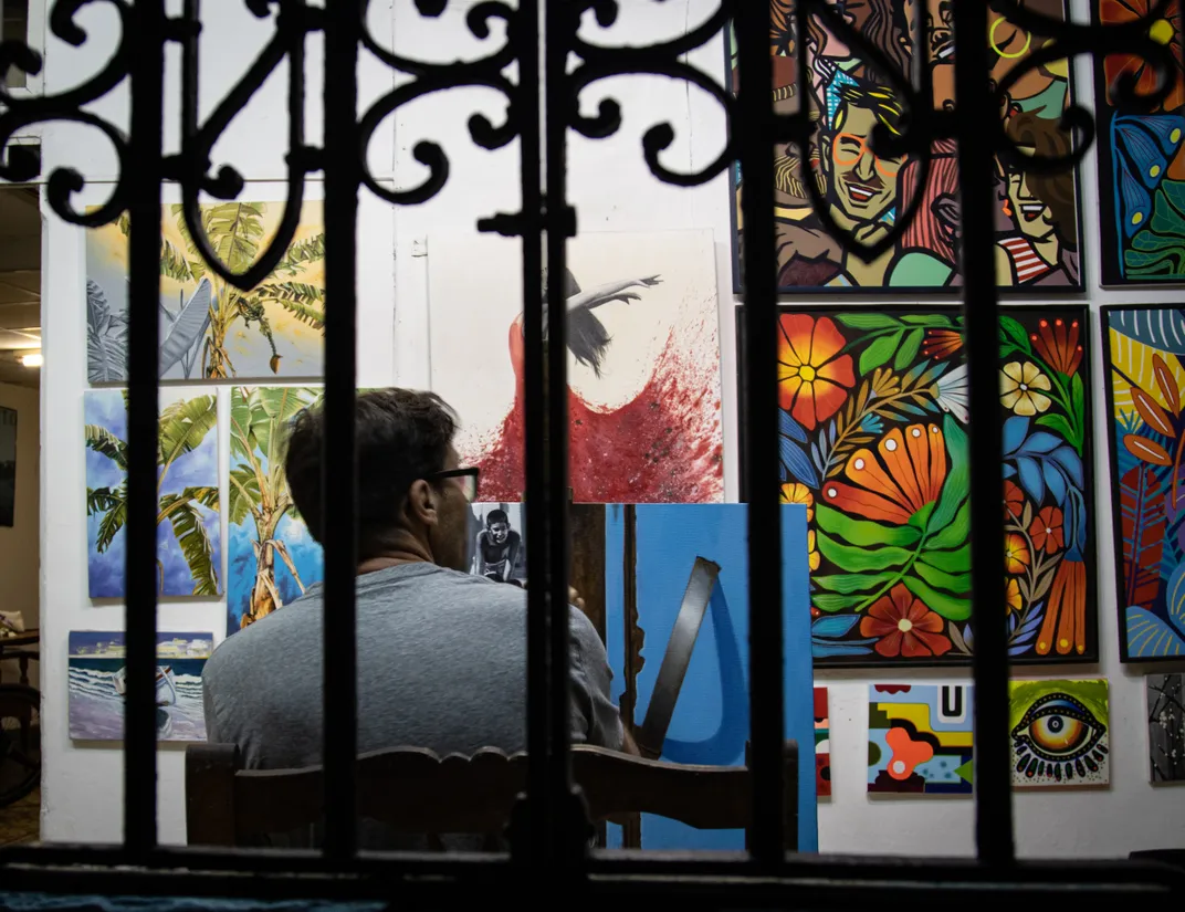 Wandering through Havana, I stumbled upon an artists refuge as he carried out his craft. The brush strokes behind bars awoke a metaphor for Cuba's larger plight. The hope and strength of an entire people ensnared in global conflict and inhumane sanctions.