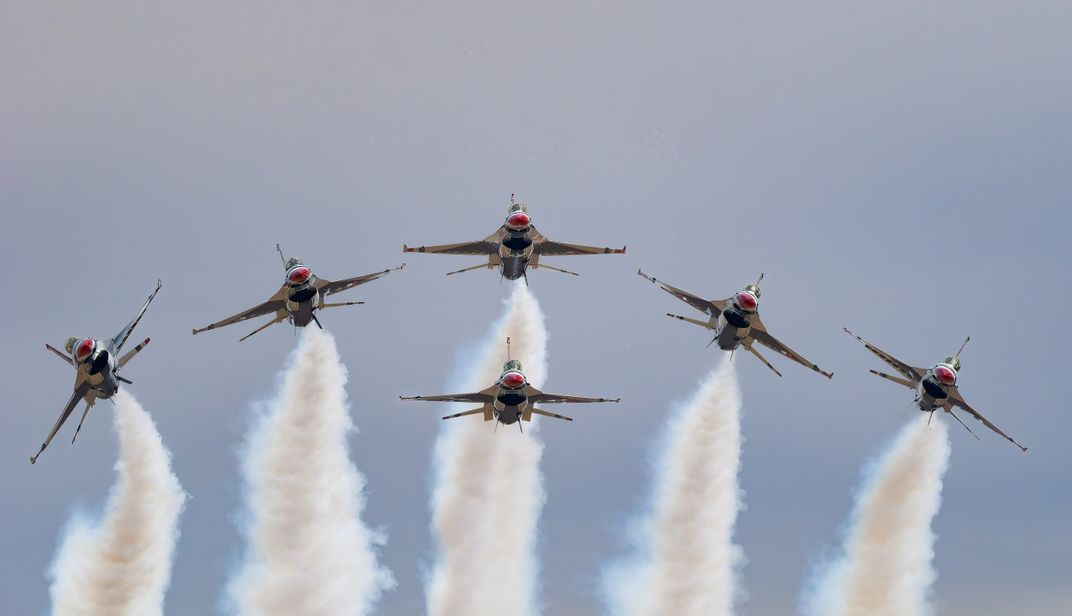 At the NASCAR Pennzoil 400 in Las Vegas the Thunderbirds did their flyover during the National Anthem.